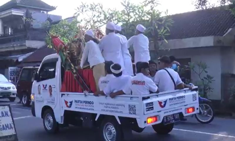 Mobil Ngayah Partai Perindo ikut serta dalam menghantarkan umat serta sarana upacara, pada Selasa (20/12/2022).