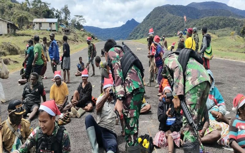 Satgas Yonif 143/TWEJ bersama aparat menyambut kedatangan warga yang kembali dari pengungsian.https://bit.ly/3Q9qRs4