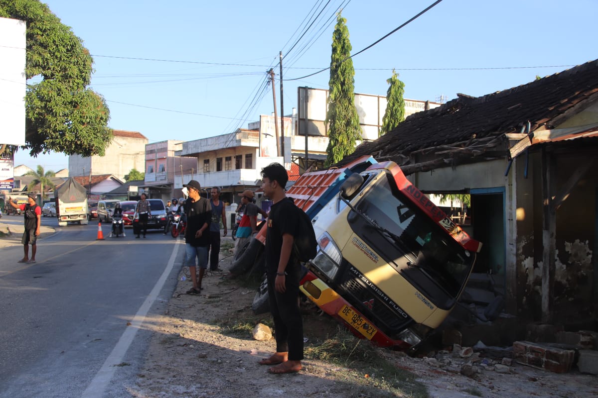 Truk bernomor Polisi BE 8857 ZX itu juga menimpa bangunan bengkel milik warga.https://bit.ly/43xRA7d