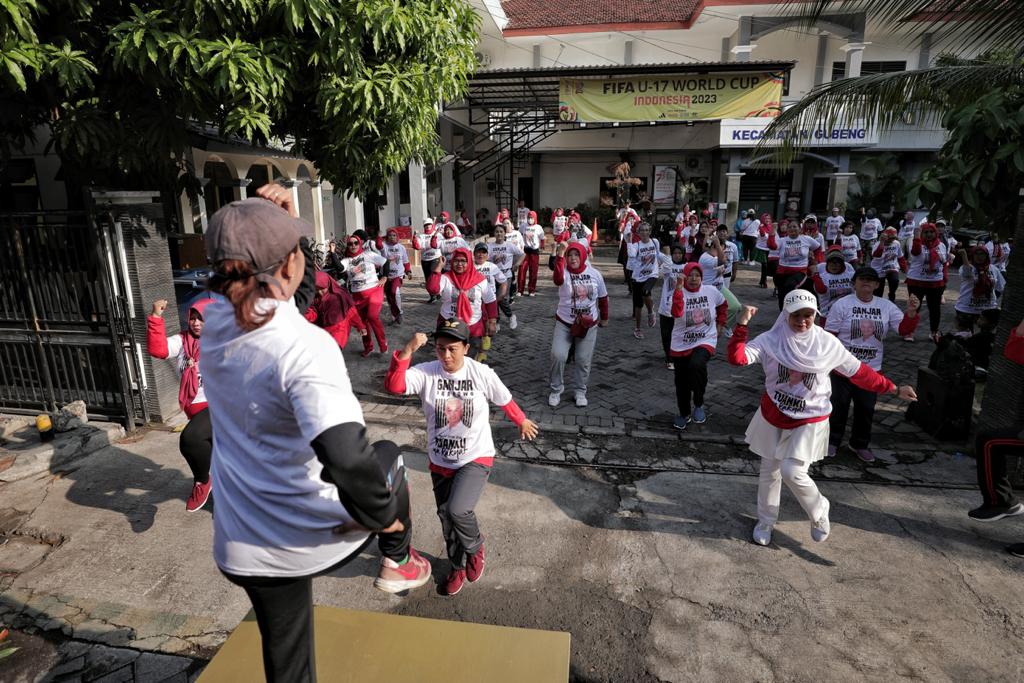 Sosialisasikan Ganjar-Mahfud, Relawan Senam Bugar Ceria Bareng Warga Surabaya