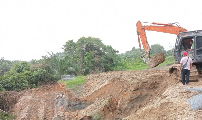 Sepanjang 60 meter saluran primer, Daerah Irigasi (DI) Air Manjunto, Desa Lalang Luas, diterjang longsor.