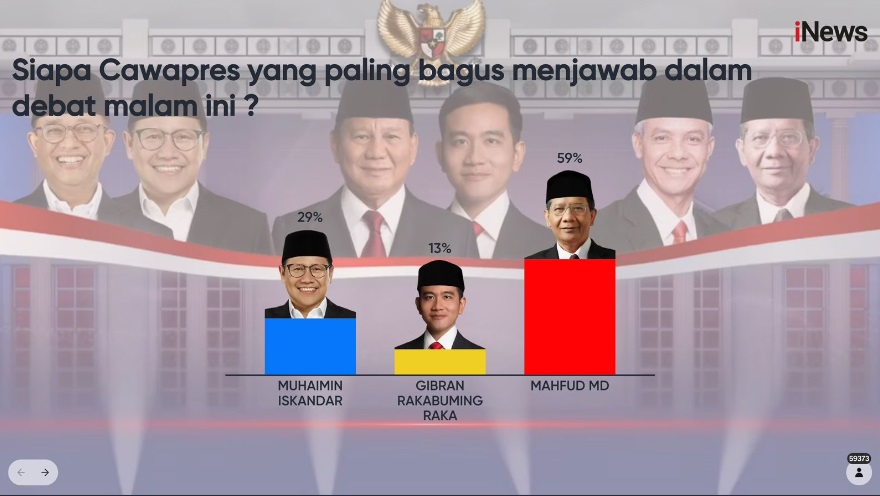 iNews TV menggelar polling siapa Cawapres yang paling bagus menjawab dalam debat semalam.